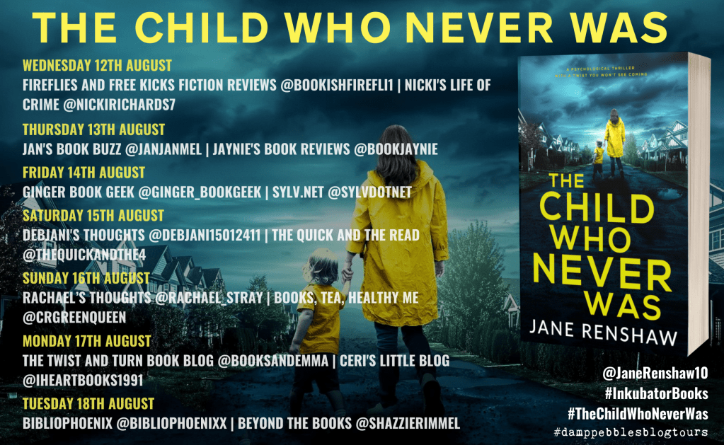This is an intense 4-star read. Many thanks to Damp Pebbles Blog Tour and Inkubator books for inviting me on the tour. Take a look at what other bloggers are saying about The Child Who Never Was …