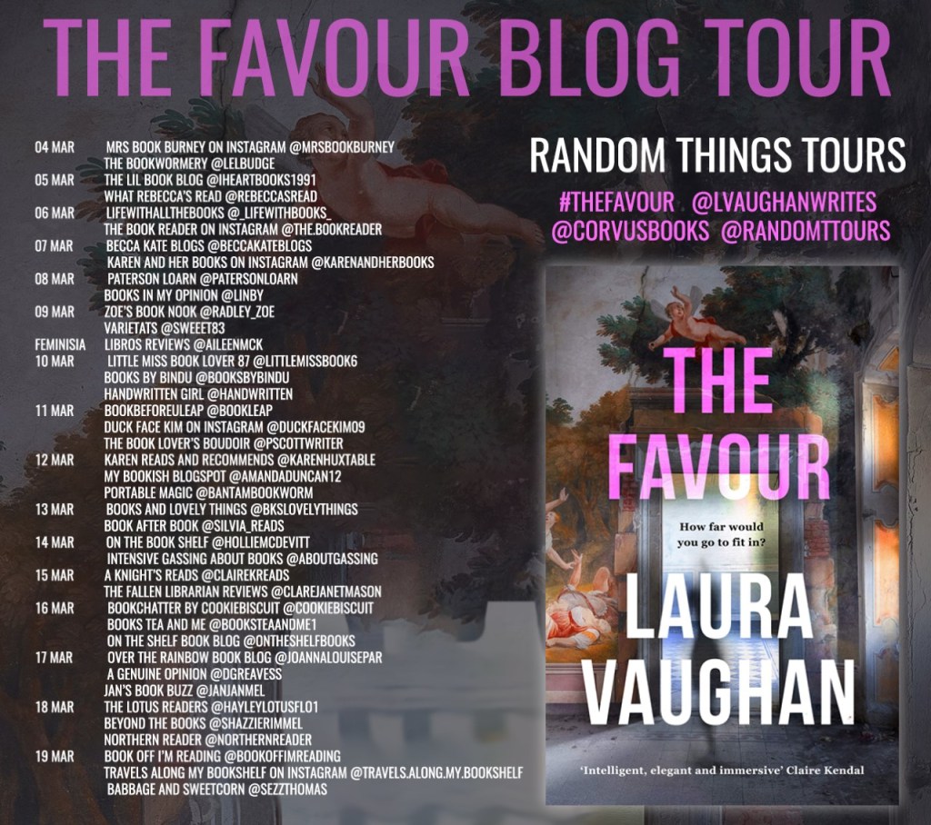 I didn’t find this an easy book to read, but because of the gorgeous descriptions it gets 4 stars from me. Thank you to Anne Cater from Random Things Tours for inviting me along. Take a look at what other bloggers are saying about The Favour …