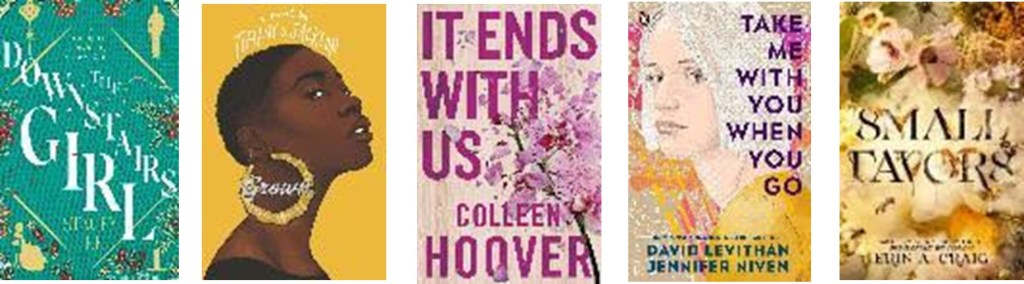 The last five titles are YA and Children’s. Downstairs Girl by is a triumph of storytelling. A bold portrait of this country’s past, brilliantly painted wit, heartbreak, and unflinching honesty. Everyone needs to read this book. Grown by Tiffany D. Jackson exposes the underbelly of a tough conversation, providing a searing examination of misogynoir, rape culture, and the vulnerability of young black girls. Groundbreaking, heart-wrenching, and essential reading for all in the #MeToo era. It End with Us by Colleen Hoover is a brave and heartbreaking novel that digs its claws into you and doesn’t let go, long after you’ve finished it. In Take You With Me When You Go by David Levithan & Jennifer Niven Ezra wakes one day to find his sister gone. No note, no sign, nothing but an email address hidden somewhere only he would find it. Escaping their toxic home life, Bea finds herself alone in a new city- without friends, without a real plan- chasing someone who might not even want to be found. Small Favors by Erin A Craig is as dark and romantic as it haunting, it is an eerie fairytale that is a real page turner.