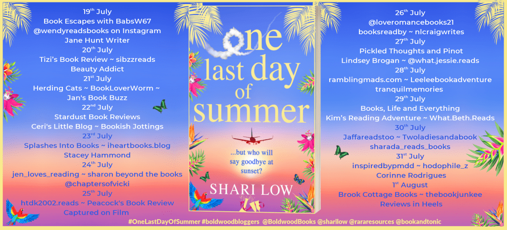 I loved every single character (okay, not Hayley’s husband, or Bernadette’s – although I was amused that his surname was the same as a cult leader associated with murder!) The story has Shari Low’s signature humour, together with a serious message and loads of wisdom too. It’s a great holiday read. Thank you to Rachel’s Random Resources for the blog tour.