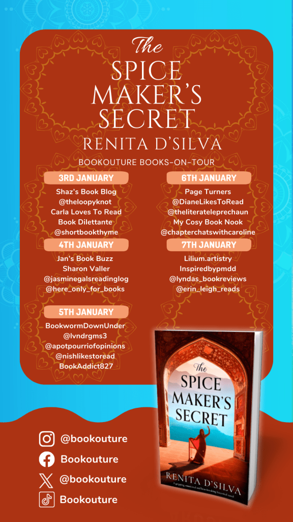 I can’t think of a better way to start the year than with a blog tour! Today we’re doing a ‘Books on Tour’ with the fabulous folks at Bookouture and an author who never disappoints: Renita D’Silva. Her latest book is a sweeping novel of love, loss, struggle, betrayal, making the most of the hand that you’re dealt in life and learning that doing good for others is ultimately the quickest path to our own healing.